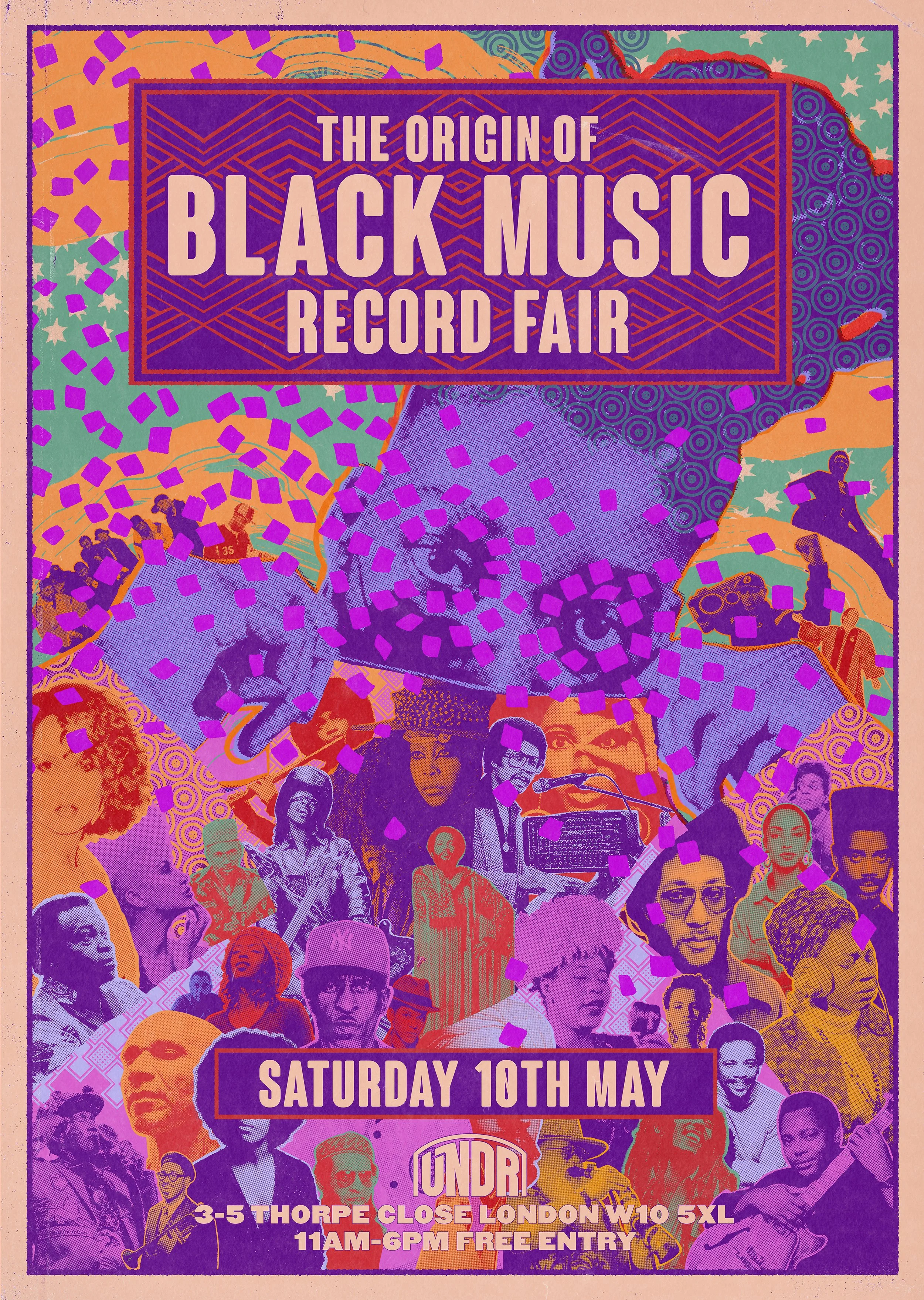 THE ORIGIN OF BLACK MUSIC FAIRPoster design and illustration for the Origin of Black Music Fair. This was the second pop-up market and record fair held at UNDR, London.Commisioned by Tony Thorpe